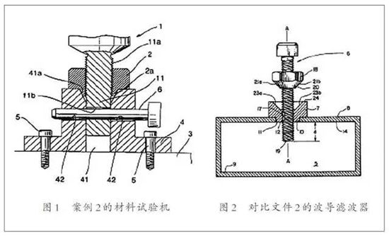 案例2的分类号为G01N3/02,对比文件2的分类号为H01P1/20、H01P7/06,两者属于完全不同的技术领域。案例2通过将锁紧螺母嵌进锥形孔来实现上下夹具安装后轴心一致无错位,轴11和连接构件4都是连接部件,用于将夹具安装固定。而对比文件2是波导滤波器,通过在腔体8中旋进或旋出螺杆6进行频率调节,螺杆6是频率调节部件,与轴11的作用完全不同。虽然对比文件2与案例2的螺杆、锁紧螺母等结构看上去形似,但分析可知,对比文件2并不存在案例2的上下错位的技术问题,两者中的螺杆、连接构件(腔体)作用完全不同。另外,对比文件2与案例2的技术领域相差甚远,不属于功能类似或应用类似的领域,也不是通用领域。本领域技术人员根本无法想到去对比文件2所在的领域寻找解决问题的技术手段。因此,对比文件2并不能给出技术启示。